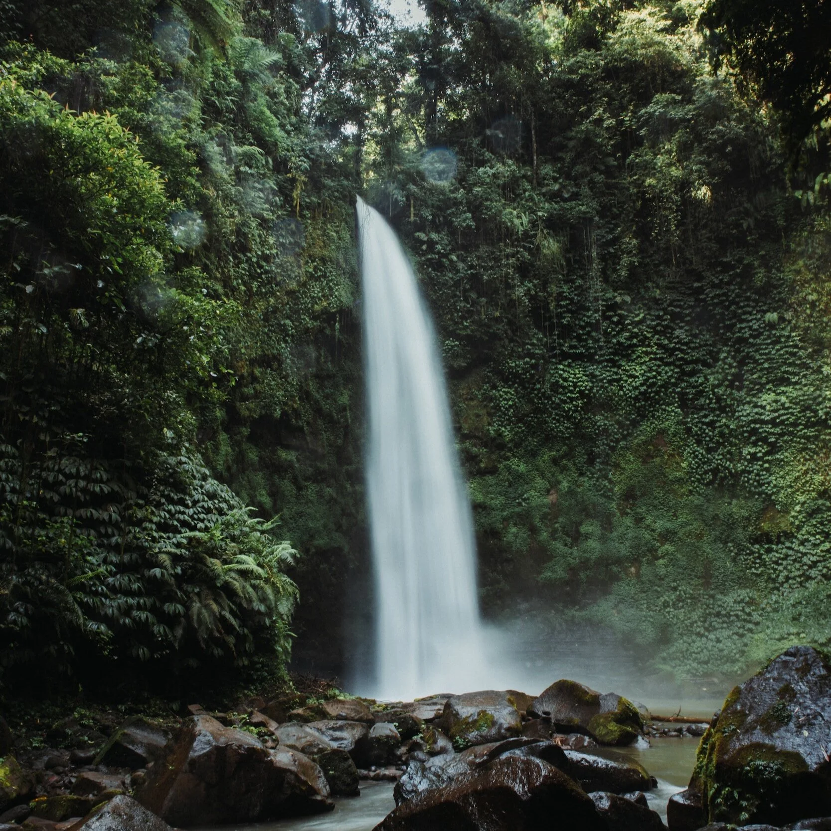 es una curiosa cascada virgen escondida entre rocas. Es única porque se encuentra dentro de una cueva en el valle de un río purificado. Es uno de los lugares más singulares de Bali ya que, una vez dentro, se nota el ambiente más fresco y una sensación de paz y tranquilidad. Recomendable llevar las chanclas con agarre para andar y el traje de baño porque es posible mojarse un poquito, aunque allí no se puede nadar.