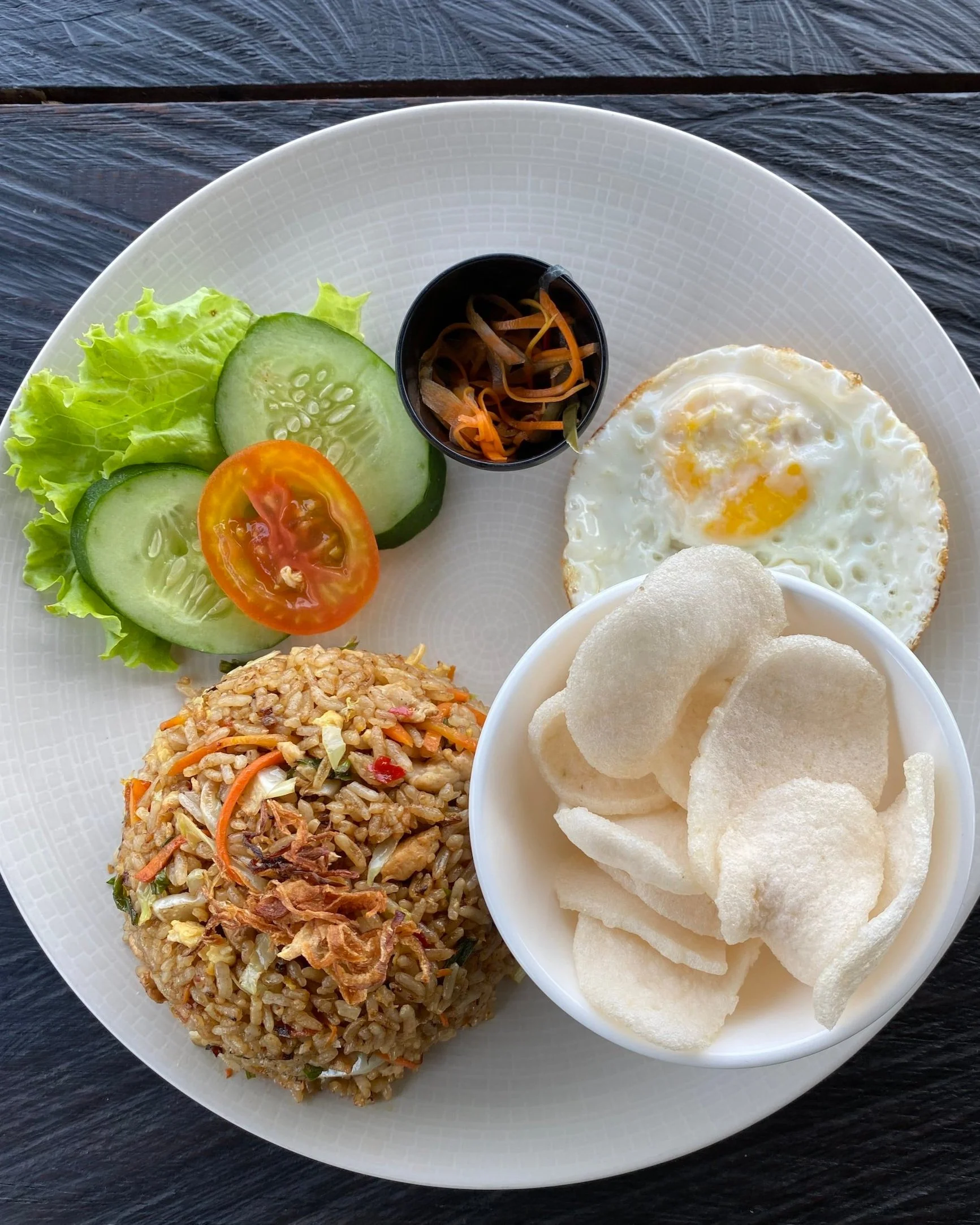 Es arroz frito cocinado con salsa de soja dulce. El plato original va acompañado de un huevo frito y verduras, pero también puede incluir pollo o tempeh.