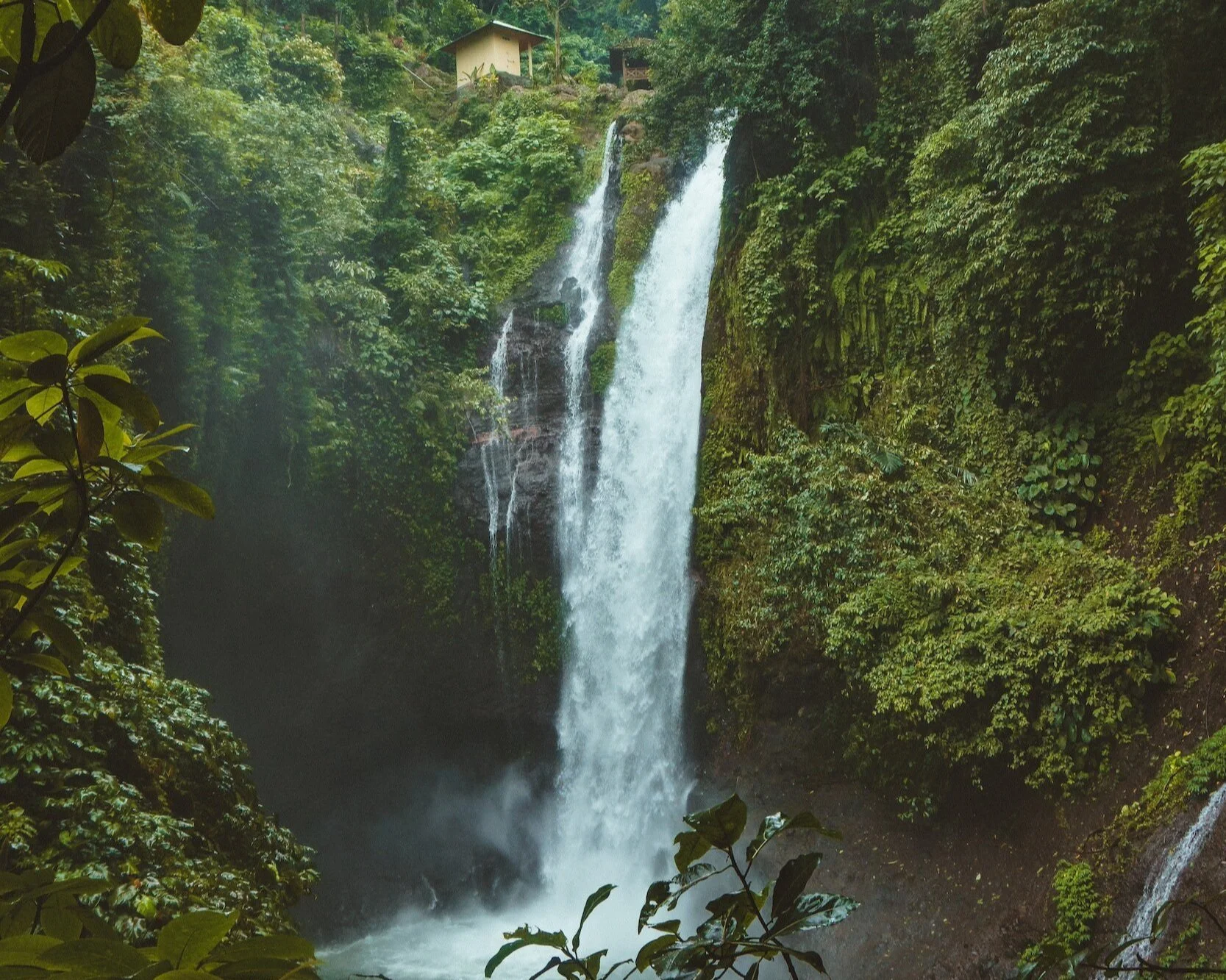 Es una de las más impresionantes y bonitas del norte de Bali, tiene una altura de unos 30 metros y se encuentra en plena selva, además es menos frecuentada por turistas debido a su localización. El tour para visitarla incluye también otras cascadas, pero se puede pagar la entrada sólo para ver ésta, que es la que merece más la pena.